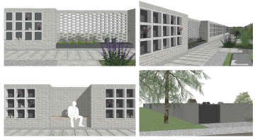 Objekt márnice se tím odhalí a očistí na svůj základní archetypální tvar. Architekti navrhují tento objekt pojmout jako trvale otevřený, aby plnil funkci přístřešku pro možnost schování před sluncem a deštěm.Důležitým bodem návrhu rekonstrukce hřbitova je kultivace stávající obvodové zdi a její propojení s novou částí.