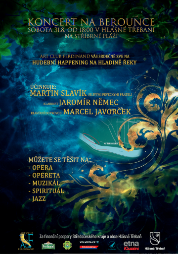 Art Club Ferdinand zve v sobotu 31. 8. 2024 na Koncert na Berounce - hudební happening na hladině řeky. Začátek v 18:00 na Stříbrné pláži.