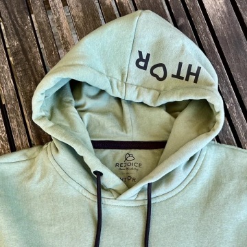Naše "srdcovka" je vytištěna 3D tiskem na líci, na kapuci je vyveden nápis HT+R. Stylový kousek na chladnější večery.