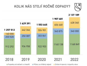 V roce 2022 zaplatí obec za všechny druhy odpadů celkem 2,14 milionu Kč. Na poplatcích a příjmech z tříděného odpadu získáme pouze zhruba 1,5 mlionu Kč.