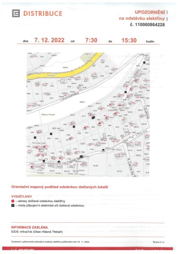 Oznámení o přerušení dodávky elektřiny dne 7. 12. 2022 od 7:30 do 15:30 hodin